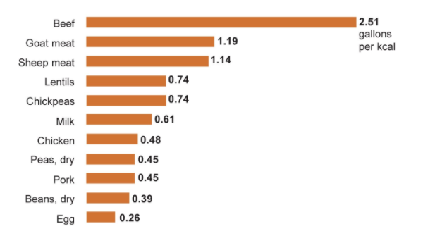 (Chart from Gemperle Family Farms of the water usage per gallon of various food products)