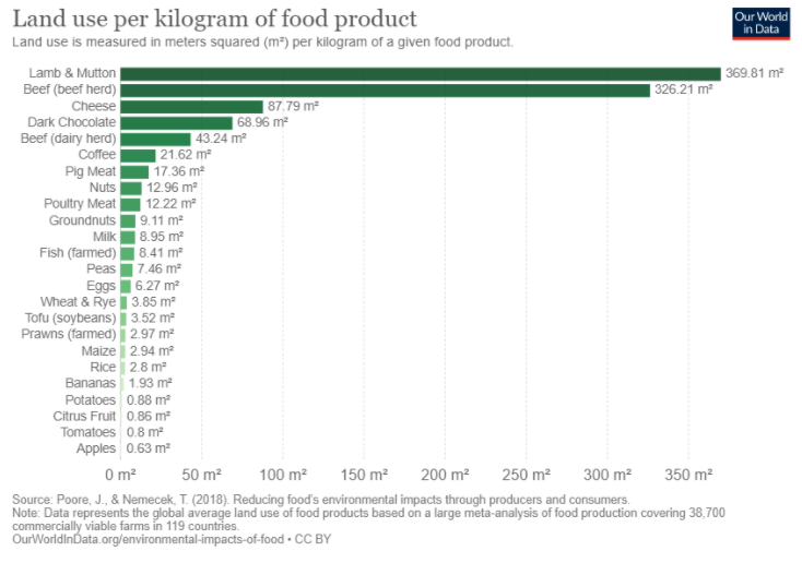 As mentioned in an earlier section, animal agriculture can be detrimental to the environment, however, I understand for some people giving up animal-based products is not an option for them. These charts show the water usage, land usage, and carbon emissions of various food products in order to help you understand the environmental impact of specific foods. This can help you create your own individualized diet of the foods you want, while still lowering your ecological footprint!